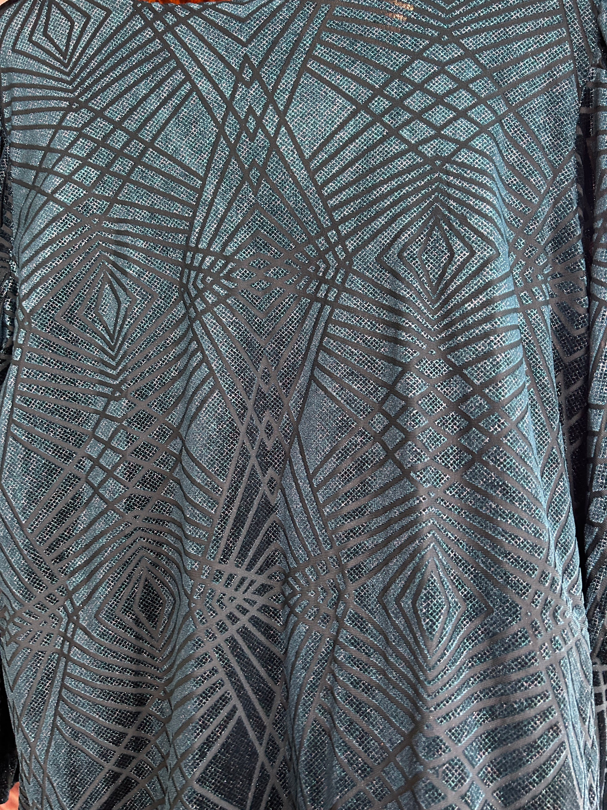 Explore the Velvet Maze Blouse with an abstract print in hunter green. The v neck and bubble sleeves enhance your figure and the soft velvet fabric and lining offer comfort and style. Get ready to stand out with this playful and fun addition to your wardrobe.